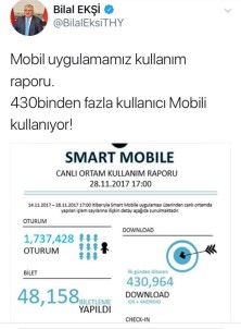Smart Mobile uygulamasının gördüğü ilgiden memnun olan THY Genel Müdürü Bilal Ekşi, rakamları