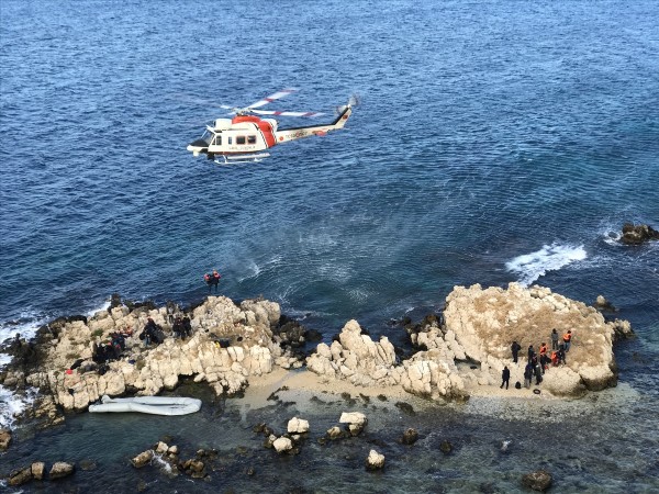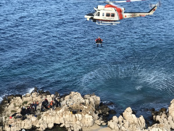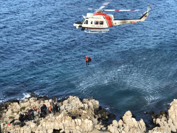 Bu arada, denizden de başlatılan kurtarma çalışmalarında, kayalıklarda mahsur kalan göçmenler 4 ayrı Sahil Güvenlik botuyla kurtarılarak kıyıya çıkarıldı.