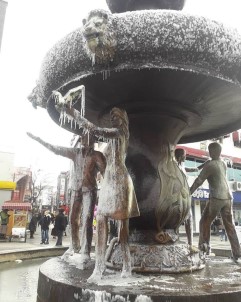 Edirne’de, gece hava sıcaklığı eksi 5 derece kadar düşünce kentteki bazı süs havuzları buz tuttu.
