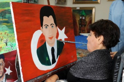 Yozgat’ta kollarını kullanamadığı için ağzıyla tuttuğu fırça ile binin üzerinde yağlı boya tablo yapan bedensel engelli Narin Işık, Cumhurbaşkanı Recep Tayyip Erdoğan, Milli Güreşçi Rıza Kayaalp’in ardından 15 Temmuz Şehidi Ömer Halis Demir’in de tablosunu çizdi.