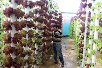 Antalyalı üretici, alternatif ürün yetiştirmek ve toprak kirliliğini önlemek amacıyla kurduğu dikey topraksız serasından yılda 9 dönem marul alarak servetine servet katıyor. Üzer, dikey boruları yerleştirdiği saksıların içinde 5 dekar alandan elde edeceği ürünü 1 dekardan elde ediyor.