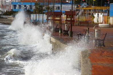 Öğle saatlerinde Kuzey Ege’de etkili olmaya başlayan ve hızı 75 kilometreye kadar çıkan lodos fırtınası sebebiyle dev dalgalar oluştu.