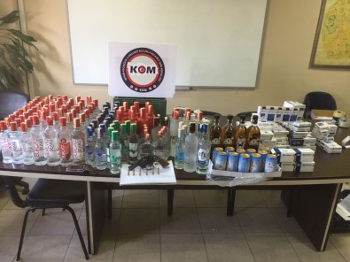 kaçak içki ele geçirdi. Kontrollerde ayrıca 210 paket