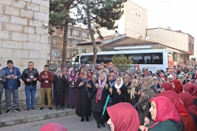 Camii önünde toplandı. Umreye gidecek olanlarının ailelerinin ve yakınlarının da katıldığı uğurlama programında