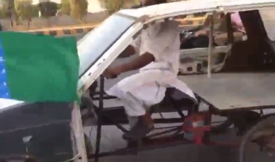 Otomobil gibi gözüküyor ama değil. O, üzerine otomobil iskeleti oturtulmuş bir bisiklet.