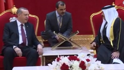 Erdoğan daha sonra Sakhir Sarayı’nda Bahreyn Kralı Hamad Bin İsa El Halife tarafından da resmi törenle karşılandı. Erdoğan ve Bahreyn Kralı daha sonra baş başa görüşmeye geçti.