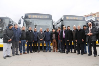 Daha sonra Belediye Başkanı Ertuğrul Çalışkan, yeni alınan halk otobüsünü inceleyerek direksiyona oturdu.