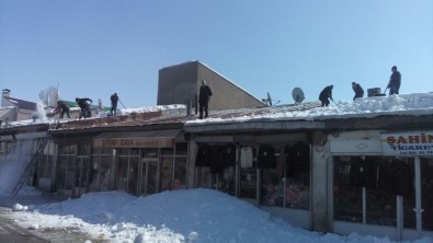 İlçe merkezinde belediye ekipleri önce çatılardaki kar yığınlarını yere döktü daha sonra ara arterlerde olmak üzere sokaklar kardan temizlendi.
