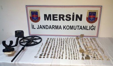 jandarma ekipleri, söz konusu kişinin evinde arama yaptı. Aramada, 1 adet çivi, 6 adet yüzük, 8 adet mühür, 24 adet taş obje, 76 adet metal obje, 1 adet ok ucu ve 355 adet sikke olmak üzere toplam 471 adet çeşitli dönemlere ait tarihi eser ile 1 adet dedektör ele geçirildi.