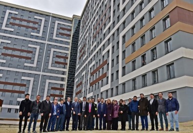 Belediye başkanı Nurullah Cahan ve beraberindeki heyeti Kredi ve Yurtlar Kurumu Uşak İl Müdürü Tahir Emre Can ve HMD İnşaat Şirketi Yönetim Kurulu Başkanı Fethullah Hamidi karşıladı.