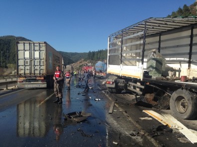 Sakarya istikametine gitmekte olan Vehbi Sehere (48) sevk ve idaresindeki 42 CEN 67 plakalı tır, yine aynı istikamete gitmekte olan Mehmet Sesigüzel’in (35) kullandığı 63 M 3591 plakalı tıra henüz sebebi belli olmayan bir nedenden dolayı arkadan çarptı. Çarpmanın etkisiyle Vehbi Seher yönetimindeki tır yol kenarındaki su kanalına çarparak durabildi. Kaza sonrası melas yüklü tırın kupa kısmı tamamen yanarak kullanılmaz hale gelirken, araçta bulunan elektrik trafoları yola savruldu. Yolun kenarında yanan tır,