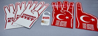 Referanduma çok bir zaman kalmamasına rağmen talebin arttığını belirten Erçevik, “Otomasyon sistemi ilerlediği için günlük 100 bin üretim adedimiz var. Daha önce yapılan İstanbul mitingine 4 milyon kişi gelmişti. Ankara mitingine de keza yine aynı. Orada da çok hareketli oluyor. Bunlara bir de Milliyetçi Hareket Partisi’nin katılması, ortak miting düzenleyecek olmaları bizi ummalı bir çalışmaya doğru itti. Herkes Türk bayrakları ile mitinglere gidiyor. Bizim karton eldivenlerimizin beyaz olması orada çok daha fazla bir ambiyans yapıyor. Biraz daha ön plana çıkmasını sağlıyor. Biz önce kırmızı üzerinde düşünmüştük. Ama daha sonra beyaz üzerinde ‘Evet’ yazısının daha mantıklı olduğunu gördük. Bize ulaşmak isteyen internet sitemizden, sosyal medya hesaplarından bize ulaşabilirler” diye konuştu.