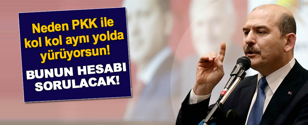 İçişleri Bakanı Süleyman Soylu, CHP Genel Başkanı Kemal Kılıçdaroğlu’nu eleştirerek, “Kılıçdaroğlu sen bugün PKK’nın değirmen suyuna neden can suyu taşıyorsun. Bunun hesabı sorulmaz mı? Niçin kol kola beraber yürüyorsun?” dedi.