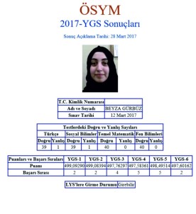 Kahramanmaraş’tan gelerek Ankara’da eğitimini sürdüren Beyza Gürbüz, YGS’de Türkiye 2’ncisi oldu.