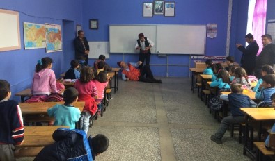 İlkokullarda sınıf sınıf gezerek, orta oyunu sahneleyen MBŞT ekibi, ayrıca öğrencilere çeşitli ikramlarda da bulundu.