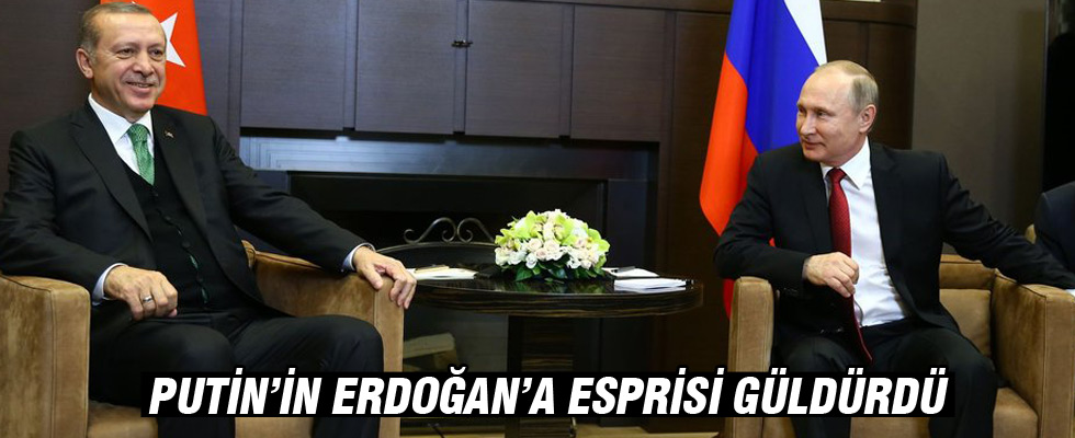 CumhurbaşkanıRecep Tayyip Erdoğan, Soçi'de Rusya Devlet Başkanı Vladimir Putin ile bir araya geldi. Rus lider, görüşmenin başlangıcında Erdoğan'a yerine oturmayı bekleyen Türk heyetini göstererek “Seninkiler çalışmak istemiyormuş” diyerek espri yaptığı bildirildi.