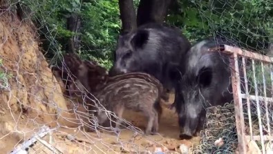 İstanbul Sarıyer’de ormanlık alanda yiyecek bulmayan domuz sürüsü yavrularıyla birlikte şehre indi. Çevredeki vatandaşlar acıkan domuz sürüsüne yiyecekler atarak besledi.