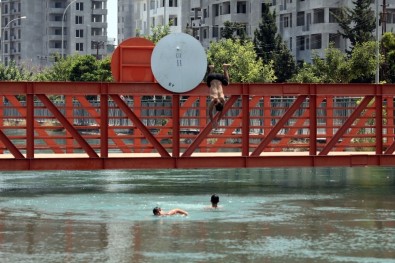 Sulama kanalında serinlemeye çalışan 14 yaşındaki Mehmet Yılmaz, yüzmeyi bilenler için sulama kanallarının keyifli olduğunu ifade ederek, "Yüzmeyi bilmiyorsan boğulur ölürsün, lahmacununu yeriz. Su serin ve soğuk. Korkulukların altından da atlıyoruz, üstünden de atlayabiliyoruz. Günde 3-4 saat yüzüyoruz. Bazen akşama kadar yüzüyoruz. Bir tehlikeli yanı var, polisler geldiğinde ayakkabıları atıyor, giysileri götürüyor. Biz de onlardan korkup kıyafetleri köprünün altına saklıyoruz" diye konuştu.
