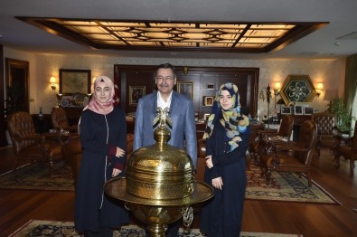 Ankara Büyükşehir Belediye Başkanı Melih Gökçek, Muradiye Özel Nene Hatun Kız Fen Lisesi’nin LYS 2017 Türkiye şampiyonu ve Türkiye üçüncüsü başarılı öğrencilerini, makamında kabul etti.