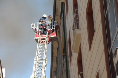 Çatı Alev Alev Yandı, Mahsur Kalan Kadını İtfaiye Ekibi Kurtardı