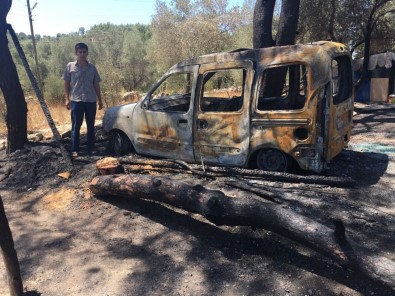 Elektrik Tellerinden Çıkan Yangın Aracı Küle Çevirdi