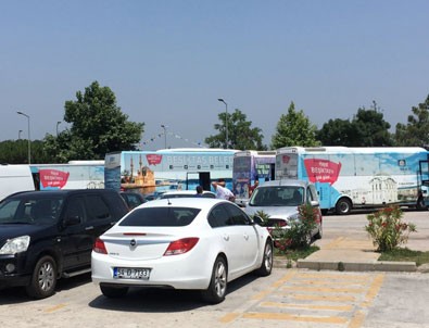 Fotoğrafta, CHP'li başkanların yönettiği Beşiktaş ve Kadıköy belediyelerinin, resmi otobüsleri dikkat çekti.
