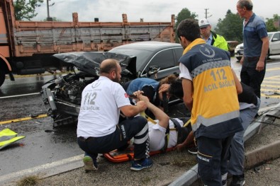 Düzce D-100 Karayolu Bolu Dağı Kaynaşlı mevkiinde 1 kamyon ve 2 otomobilin karıştığı trafik kazasında 2 kişi yaralandı.