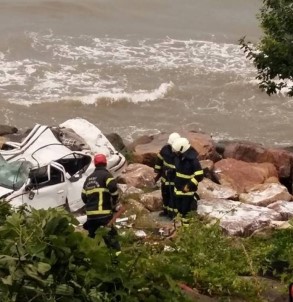 Ordu’nun Fatsa ilçesinde deniz kenarına uçan otomobil hurdaya dönerken, araç sürücüsü kazayı hafif yaralı atlattı.