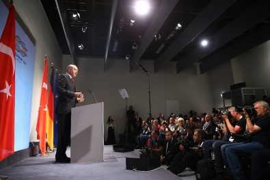 Bir Türk gazetecinin, Cumhurbaşkanı Erdoğan’ın Almanya’da zirvesi öncesi yapılması planlanan konuşmaların yasaklanmasına, Türk gazetecilerin akreditelerin gerçekleşmemesine ve Almanya’nın terör örgütlerine ev sahipliği yapmasına ilişkin yönelttiği soru üzerine Erdoğan, "Alman gazeteci arkadaşımın sormuş olduğu sorunun bir yerde cevabıdır. Basın mensuplarının Almanya’da G-20’yi izlemeye müsaade etmeyecek, onları akredite etmeyecek kadar önlerini kesen bir anlayış var. Önce bu anlayışı ortadan kaldırmak lazım bu bir. Şu anda Almanya’da benim 3 milyon soydaşım Türk var. Onlarla Almanya seyahatim vesilesiyle salon toplantısı yapmayı arzu ettim. Fakat Alman yönetimi, eyaletler vesaire benim burada salon toplantısı yapmama müsaade etmediler. Buna tahammül edemediler. Acaba bunu hangi özgürlük anlayışıyla bağdaştıracağız. Eğer özgürlükler dünyasında yaşıyorsak, Türkiye Cumhuriyeti’nin yüzde 52’sinin oyunu alarak, Cumhurbaşkanı olmuş olan bir Cumhurbaşkanına, Almanya’da bir salon toplantısında konuşma müsaadesi vermeyenler, kusura bakmasınlar özgürlüklerden bahsedemezler. Benim söylediğim siyasi intihardır dediğim olay budur. Bu siyasi bir intihardır. Bu bumerang gibi döner, bir zaman da kendilerini vurur. Salon toplantımızı bırakın, telekonferansla bir mitingde buradaki vatandaşlarımla konuşma arzumuza dahi tahammül edememişlerdir. Ama PKK terör örgütünün, dağdaki eşkıyalarına oradan bağlantı kurmak suretiyle müsaade etmişlerdir. Bütün bunlar özgürlük planı içinde değerlendirilirken, PKK terör örgütünün örgüt liderine sözde onun kendilerine ait paçavralarıyla, yürüyüş müsaadesi verenler, polis kordonunda onları koruma altında yürütenler ne yazık ki en önemli politik noktadaki toplantı gösteri ve yürüyüş hakkını kullanmak isteyen meşru derneklere müsaade etmiyorlar. Türkiye’de böyle bir yasak yok" diye konuştu.
