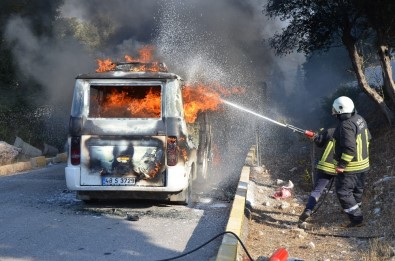 Milas'ta Seyir Halindeki Minibüs Alev Alev Yandı