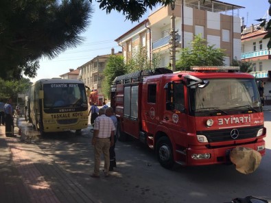 Taşkale köyüne ait 07 LY 920 plakalı midibüsten dumanların çıktığını gören vatandaşlar durumu itfaiye ve polise bildirdi. Olay yerine gelen