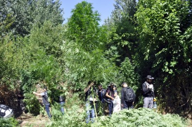 Özel Harekat polislerinin de destek verdiği operasyonun yapıldığı bölge insansız hava araçlarıyla kontrol edildi. Operasyonda yaklaşık 4 metre boyunda Hint kenevirleri ele geçirildi. Kenevirleri yerinden sökmeye çalışırken zorlanan polis, çareyi bitkileri baltayla kesmekte buldu. Kenevirler, numuneler alındıktan sonra yakılarak imha edildi.