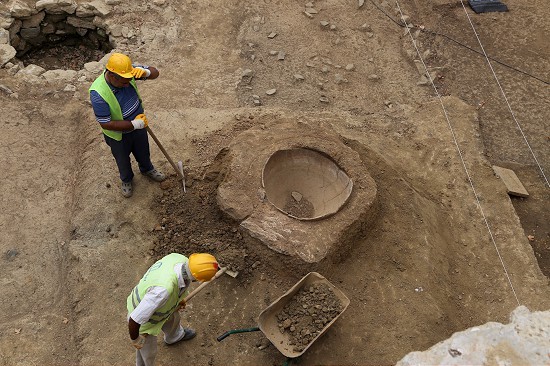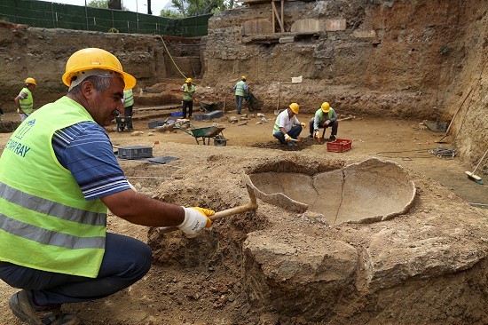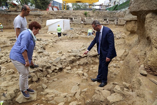 Yılmaz, Beşiktaş'taki arkeolojik kazının başkanlığını yürüten İstanbul Arkeoloji Müzeleri Müdürü Zeynep Kızıltan ile çalışmaların devam ettiği alanda incelemelerde bulunarak, kazı hakkında yetkililerden bilgi aldı.