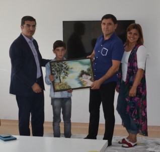 Program sonunda İlbaş, çocukların yaptığı el sanatları tabloyu Elibol’a hediye etti.