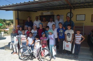 Cami İmam hatibi Veli Dinçer’in girişimleri ve hayırseverlerin destekleriyle temin edilen tablet, bisiklet, saat, ayakkabı ve bir market zincirine ait 25 TL’lik alışveriş çekleri öğrencilere dağıtıldı.