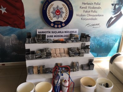 Ekipler Antakya -İskenderun yolunda kamyoneti durdurarak arama yaptı. Yapılan aramada, salça kutularına yerleştirilmiş halde 210 bin adet uyuşturucu hap bulundu.
