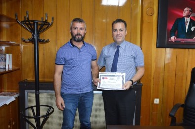 polis memuru Ali Gür’e başarı belgesini takdim etti.
