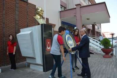 Tören İlçe Milli Eğitim Müdürü Muzaffer Bolat tarafından Atatürk anıtına çelenk konulması, saygı duruşunda bulunulması ve İstiklal Marşı okunmasıyla başladı.
