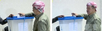 Irak Kürt Bölgesel Yönetimi Başkanı Mesud Barzani, sandık başına giderek oyunu kullandı.