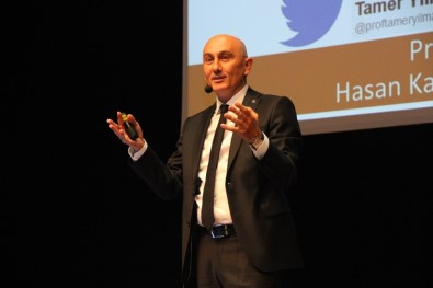 Saygı Duruşu ve İstiklal Marşının ardından HKÜ Rektörü Prof. Dr. Tamer Yılmaz’ın açılış konuşmasıyla başlayan programda Yılmaz, “24 bölümde eğitim veriyoruz. En çok tercih edilen üniversiteler arasında yer alıyoruz. Öğrencilerimizin eğitim öğretim, AR-GE ve sosyal sorumluluk projelerine büyük önem vermesi gerekmektedir. Sadece derslere girmekle üniversiteli olunmaz. Dersler çok önemli ama bir onun kadar önemli olan şey ise sosyal projelerde yer almak ve girişimci olmaktır. Üniversitelerde eğitim öğretimin yanı sıra mutlaka AR- GE ve sosyal sorumluluk projelerinin olmasıdır. Biz öğrencilerimizden inovatif ve proaktif olmalarını istiyoruz. Yani rakiplerinin hamlelerine karşı önceden hamle yapabilme yeteneğine sahip olmalarını istiyoruz. Su yutmadan yüzmeyi öğrenemezsiniz. Eğer başarılı olmak istiyorsanız elinizi taşın altına koymanız gerekir” dedi.