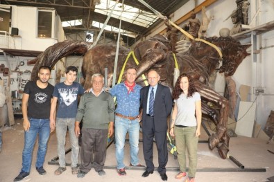 Büyükşehir Belediyesi Başkan Danışmanı Azmi Açıkdil, heykeltraş Eray Okkan’ı ziyaret ederek, çalışmalar hakkında yerinde bilgi aldı. Çalışmaların hangi noktada olduğunu görmeye geldiklerini belirten Başkan Danışmanı Azmi Açıkdil, “Gördes’in simgesi haline gelecek olan ve