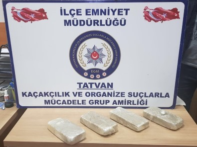 "Uyuşturucu kaçakçılarının faaliyetlerinin deşifre edilmesi ve önlenmesi amacıyla sürdürülen çalışmalar kapsamında; Bitlis Emniyet Müdürlüğü Tatvan KOM Grup amirliği ekiplerince yürütülen kapsamlı ve duyarlı çalışmalar neticesinde; 28.09.2017 günü Tatvan-Bitlis karayolu üzerinde yapılan sabit uygulamada durumundan şüphelenilen bir araç durdurulmuş, araç sürücüsü olan E.O. isimli şahsın araç içerisinde ve üzerinde yapılan arama işleminde araç torpido kısmı üzerinde bulunan boşlukta 4 paket halinde şeffaf poşetlere bantlarla sarılı halde toplam daralı ağırlığı 2 Kilo 145 gram eroin maddesi ele geçirildi. Şahsa “Uyuşturucu madde ticareti yapmak ve nakletmek” suçundan ve “Uyuşturucu madde kullanmak” suçundan işlem yapılmış. Şahıs 29.09.2017 günü adli mercilerce tutuklanmıştır. Halkımızın canına ve malına kasteden suç ve suçlulara karşı mücadelemiz kararlılıkla devam edecektir” denildi.