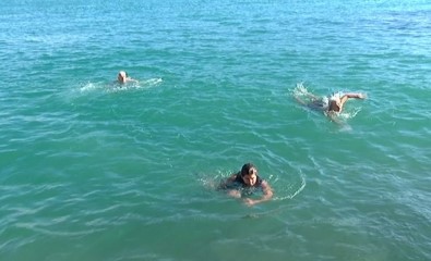 Denize giren vatandaşları ilgiyle izleyen bir vatandaş ise, "Arkadaşları bu yaşına göre çok taktir ederim. Benim girmeye zamanın yok. Zamanım olsa düşünüyorum” diye konuştu.