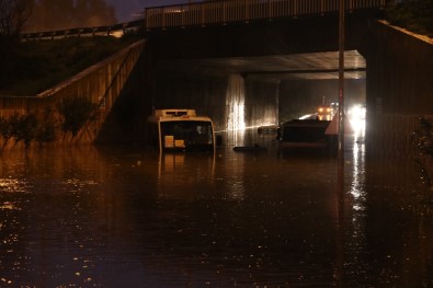 Adana’da gece boyunca etkili olan sağanak yağış nedeniyle, karayolunu 2 metre civarında su bastı. 5 Araç suyun altında kalırken, aracında mahsur kalan bir kişiyi itfaiye ekipleri kurtardı.