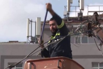 Yaşanan durumu anlatan Bekir Ertürk isimli vatandaş, “Bir tane vinç gelir bu direği asılsa bu şekilde olmayacak burası. Az kalsın ölümden döndük” dedi.