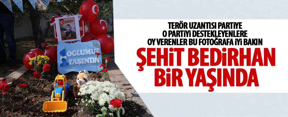 Hakkari’nin Yüksekova ilçesinde 31 Temmuz günü annesi PKK’lı teröristlerin yola döşediği el yapımı patlayıcının infilak etmesi sonucu annesi Nurcan Karakaya ile şehit düşen 10 aylık Bedirhan Mustafa Karakaya’nın birinci yaş gününde mezarı ziyaretçi akınına uğradı.