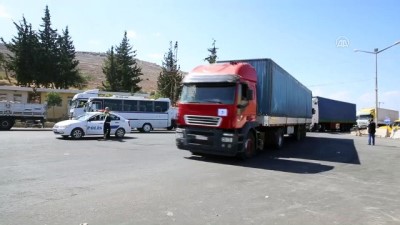 BM'nin yardımlarını taşıyan tırlar, Hatay'ın Reyhanlı ilçesindeki Cilvegözü Sınır Kapısı'ndan geçiş yaptı.