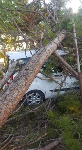 Antalya’da dün sabah saatlerinden bu yana etkili olan şiddetli poyraz yüzünden bir evin önünde bulunan yarım asırlık çam ağacı evin çatısı ve bahçede bulunan aracın üzerine devrildi. Sabah kalktıklarına dışarı çıkan aile ise gördükleri karşısında şoke oldu.