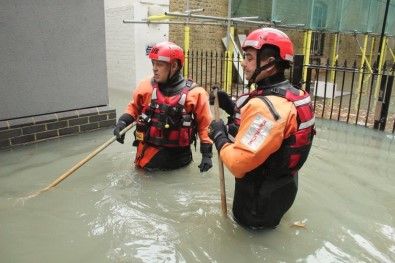 İtfaiye erlerinin, bir adam ile dükkanda mahsur kalan bir kadını şişme botla kurtardığı öğrenildi.
