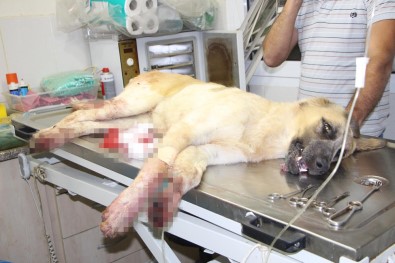 Barınakta vücudundaki saçmalar çıkarılan köpeğe serum tedavisi uygulanırken, köpeğin vücudundan 6 saçma çıkarıldığı bildirildi.